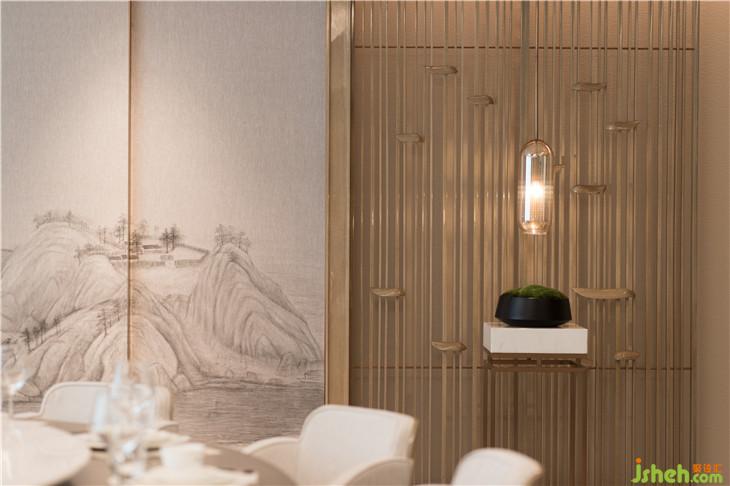 屏風(fēng)的錯(cuò)落隨意的布置尤如海面上的漁船及風(fēng)帆,寓意乘勢揚(yáng)帆而上鑄就輝煌。吊燈的元素來自項(xiàng)目的地理位置引發(fā)的設(shè)計(jì)構(gòu)思,通過以現(xiàn)代復(fù)合材料進(jìn)行藝術(shù)手法塑造成波浪,追求水波蕩漾的自然感,金屬質(zhì)感邊框做成波光粼粼的點(diǎn)綴。展現(xiàn)設(shè)計(jì)者對自然及力量的一種追求。