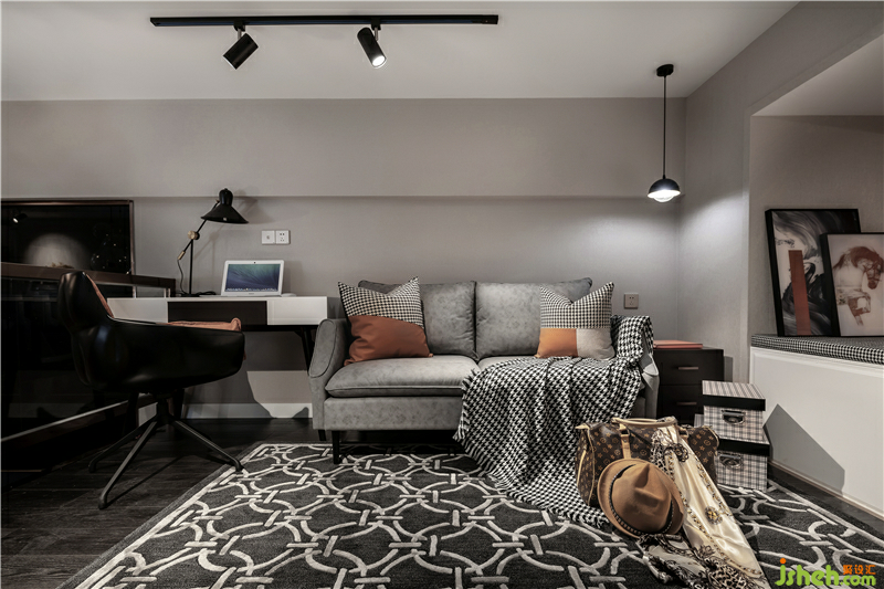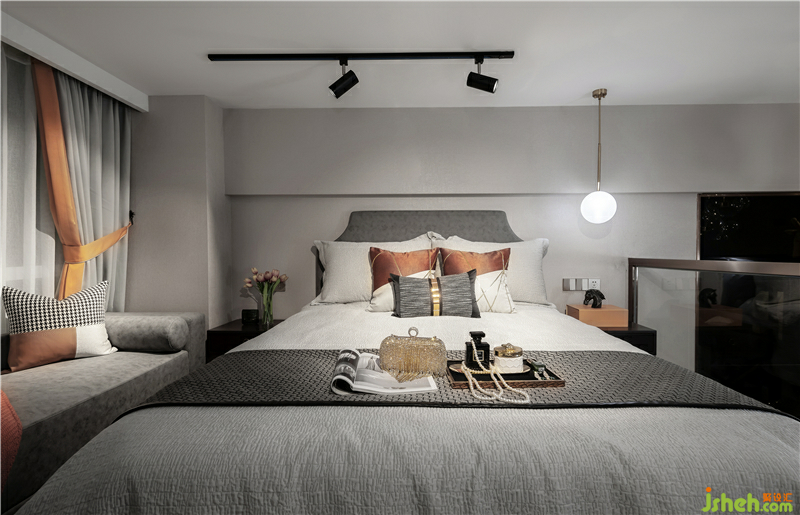 冷調(diào)暖光的籠罩,金屬質(zhì)感的細(xì)膩,絨質(zhì)材料的舒適,面料紋樣會(huì)呼吸的藝術(shù)肌理,在灰色的層次關(guān)系中無(wú)一不透著居家者的優(yōu)雅品味。軟裝在淺色面料的映襯下彰顯著空間獨(dú)特的詩(shī)意與雅致,而胡桃木原木家具的使用讓空間更具自然性與藝術(shù)性—屋不止是屋,也可以是品味與自然的結(jié)合。