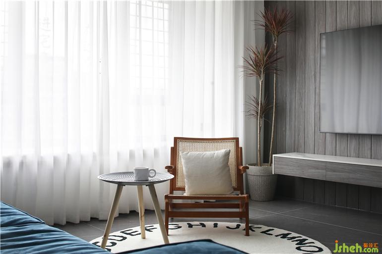 公共區(qū)域得營造上,用少量的色彩去表述空間,龍巖家裝設(shè)計運用了材質(zhì)的不同和對比,溫潤的木色電視墻、細膩的微水泥沙發(fā)背景墻、自然的藤編餐椅,以及巖板餐桌材質(zhì)的加入,用輕靈的筆觸去構(gòu)建平衡。軟裝上的錦上添花,在處理過材質(zhì)、線條的平衡之后,從色彩的角度重新審視空間,磨砂皮的湖綠沙發(fā),溫暖的單椅和地毯,清新的綠植靈動多變,卻不搶空間的整體質(zhì)感。