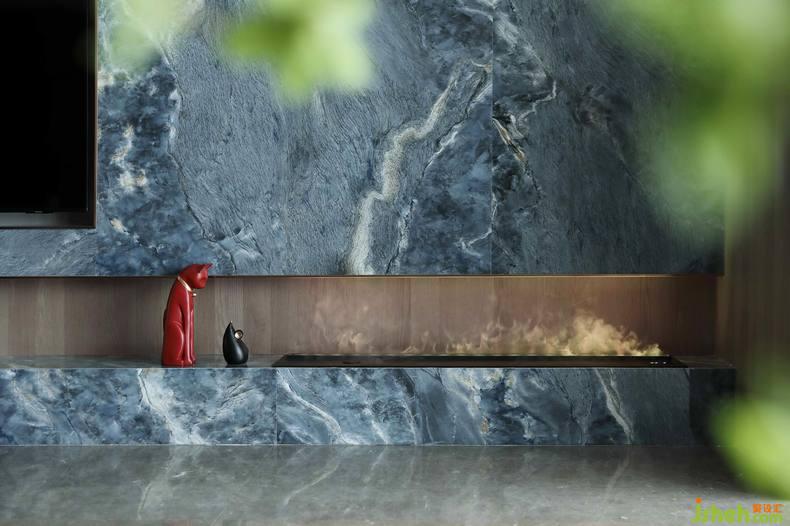 背景墻石材的運(yùn)用,不同紋理傳遞出經(jīng)典質(zhì)感格局,開(kāi)展體驗(yàn)者與空間對(duì)話。揭陽(yáng)住宅設(shè)計(jì)破裂紋理的大理石為空間帶來(lái)分量感,輕盈材質(zhì)置物架融入幾分時(shí)尚輕奢。