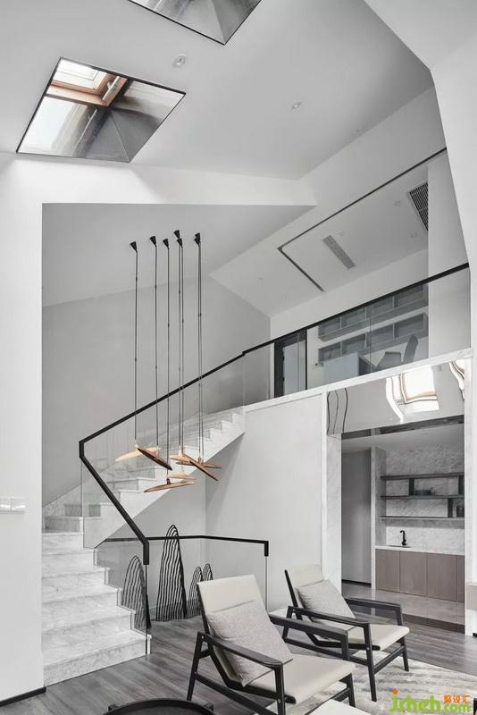 高挑的空間和毅然而上的樓梯,黑、白、灰色調(diào)的裝飾,演繹一個(gè)大氣、時(shí)尚有品位的現(xiàn)代美學(xué)設(shè)計(jì)。