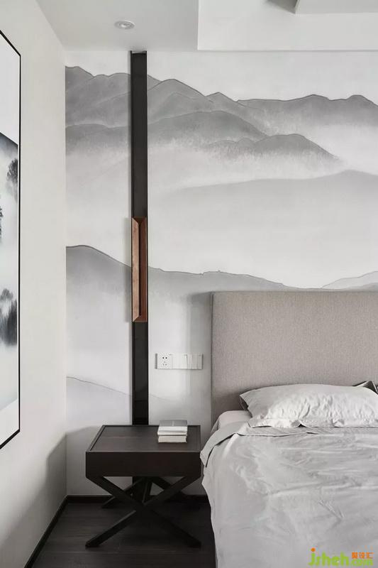 主臥的山水壁畫(huà)是點(diǎn)睛之筆,帶著一種清風(fēng)拂面的氣質(zhì)。