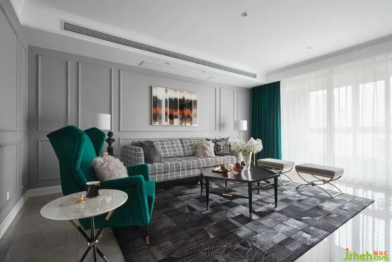 設(shè)計(jì)公司利用靠墻的千鳥格沙發(fā)與別具一格的線條、裝飾畫,沒有一分一毫的多余,在千變?nèi)f化的組合中散發(fā)出時(shí)尚優(yōu)雅。