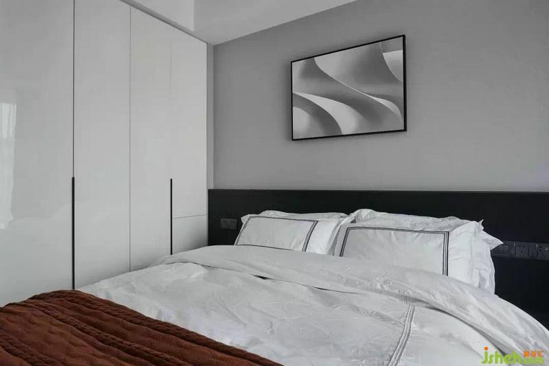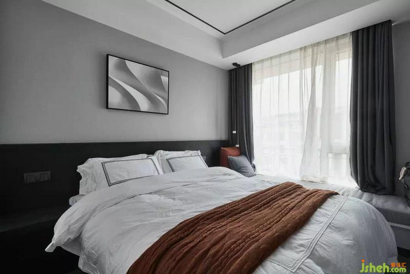 次臥同樣極具時(shí)尚感,軟裝與硬裝的搭配被設(shè)計(jì)師拿捏的非常得當(dāng),畫面非常和諧。