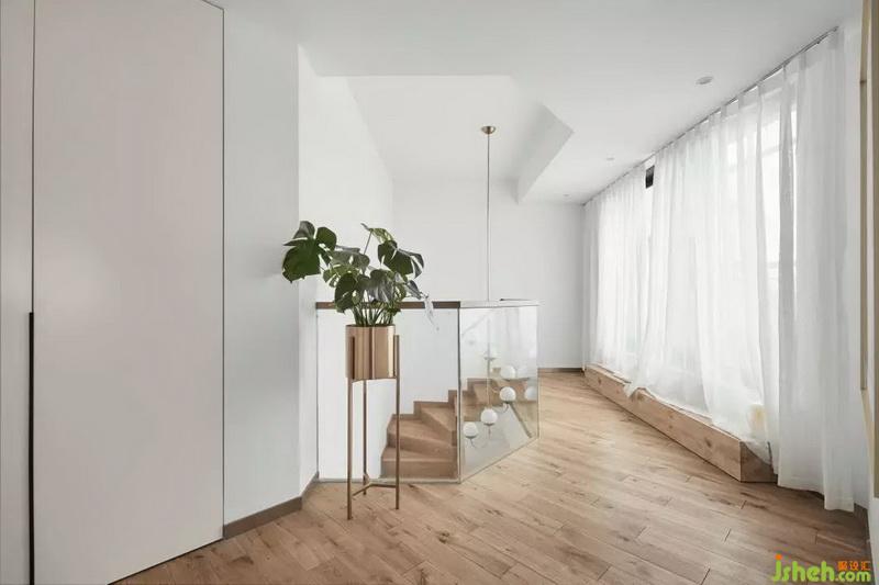 到達(dá)二樓的樓梯平臺,紗簾微垂,微風(fēng)徐來,帶著紗簾舞動的畫面。身心愉悅放松,無異于是海邊度假般的體驗。