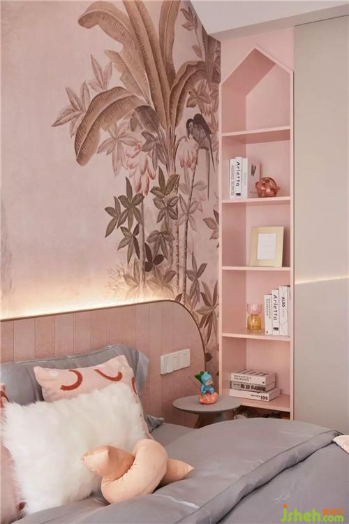 尚在兒童時(shí)期的小女兒房,設(shè)計(jì)師用了大面的粉色壁畫和充滿童趣的配飾擺件,給小朋友營(yíng)造一個(gè)充滿浪漫氣息的公主房。
