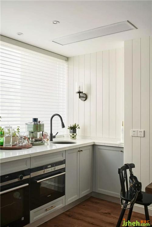 原木色是對美式的最好詮釋,餐廳原木色的餐桌椅和不同形式米白色的墻面,配以淺灰色櫥柜,沐浴在陽光之下,讓整個家居環(huán)境散發(fā)出一種怡人的氣氛,讓人置身其中,能夠獲得舒適與放松。