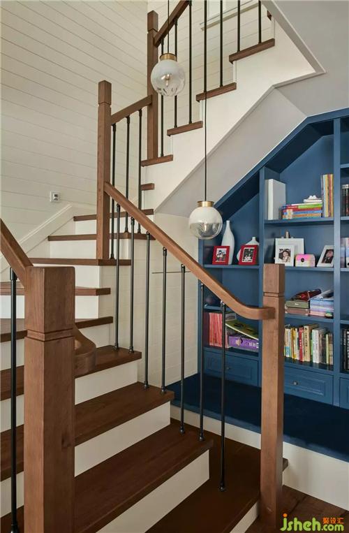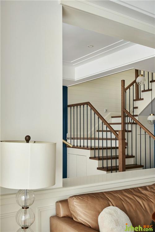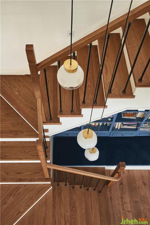 杭州裝修設(shè)計原木樓梯讓人感受自然寧靜的氣息,同色扶手及黑色的鐵藝搭配,視覺和觸覺伴隨著空間的展開,自然傳遞。
