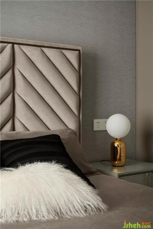 主臥室依然通過對色彩和材質(zhì)的運(yùn)用,增加空間氛圍及格調(diào),每一處細(xì)節(jié)精心選配,極力呈現(xiàn)給客戶一個(gè)理想的休息空間。