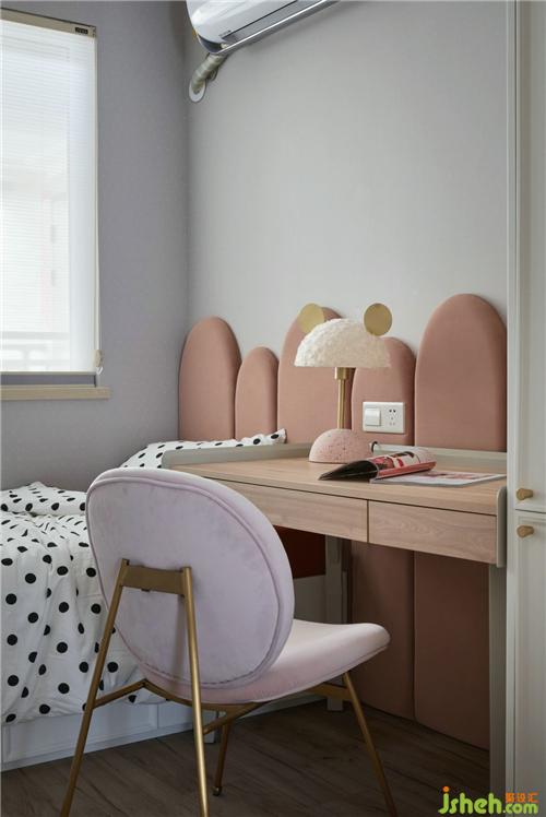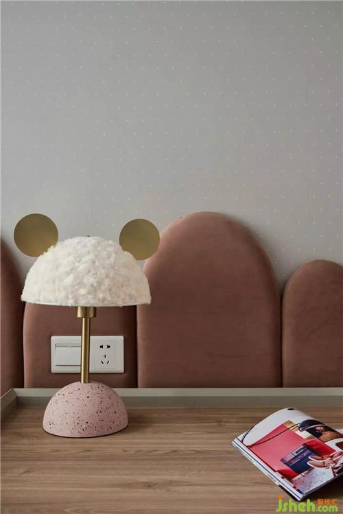 兒童房星空點(diǎn)點(diǎn)的墻面清新浪漫,粉色的手指餅干背景,可愛的臺燈,為孩子搭建了一個(gè)溫馨甜美的樂園。