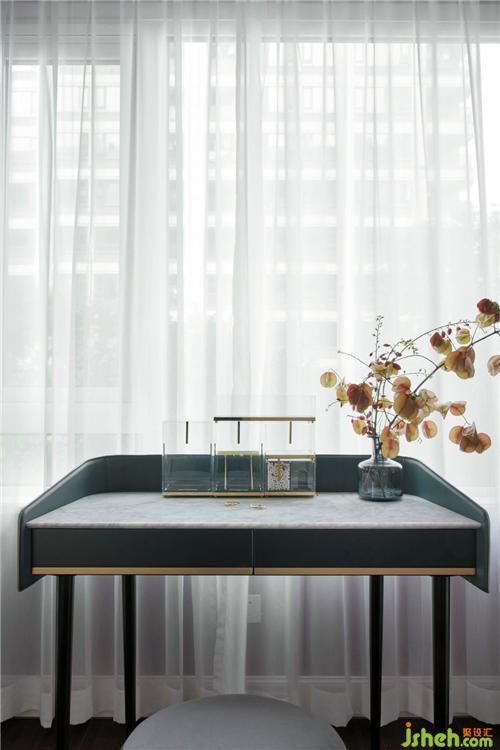 香芋紫的墻面充滿了女性的柔美典雅,古典的梳妝臺,景美的小花,點點滴滴都在敘述這個家女主人最美的姿態(tài)。