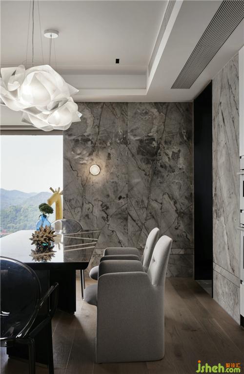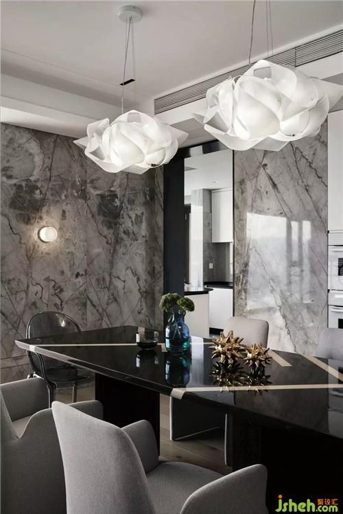 客廳餐廳連接式的布局是提高空間利用率的好方法,黑色巖板餐桌在灰色大理石墻面的映襯下,顯得華麗又質(zhì)感,白色調(diào)的西廚劃分合理,繁多的雜物都可以收納妥當(dāng)杭州裝修公司。
