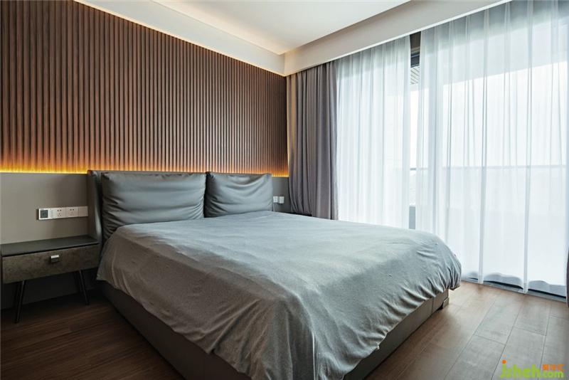 老人房胡桃木的床背景,在燈光的映射下,溫暖祥和,陽(yáng)光透過(guò)窗紗,杭州室內(nèi)設(shè)計(jì)師在這柔和光線的籠罩中,自在放松。