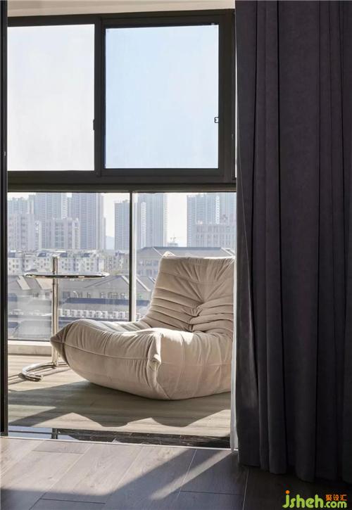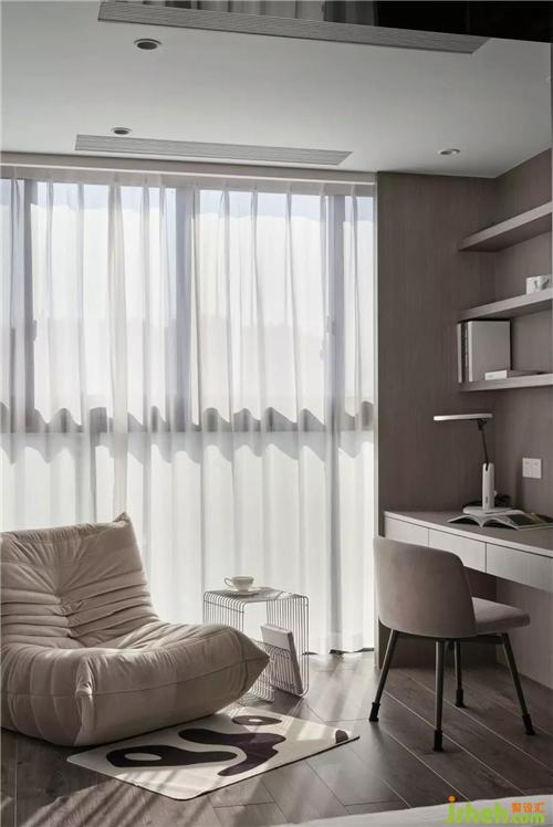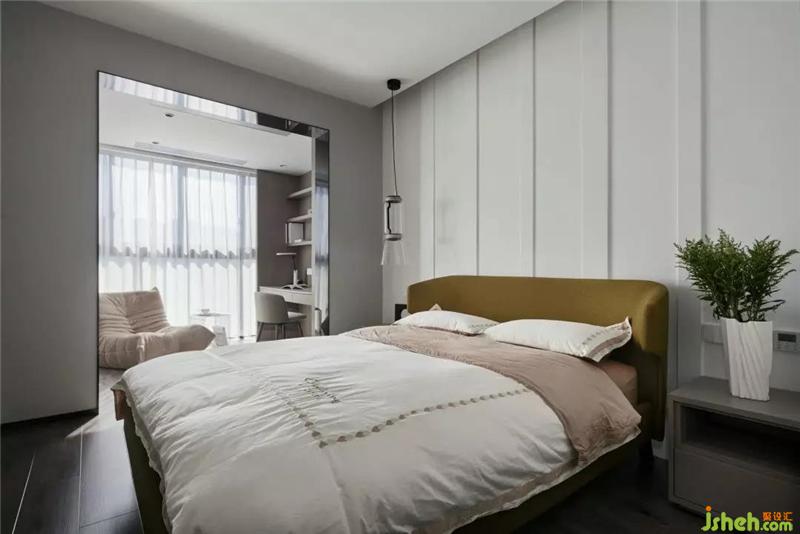 臥室灰白木的色調(diào),雅致的布置給人舒心放松的感覺,獨(dú)有的大陽臺(tái)和落地窗,紹興裝修設(shè)計(jì)加以綠植陽光的點(diǎn)綴,單看著就是一種享受。