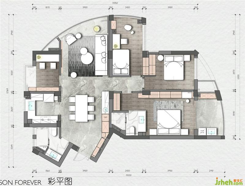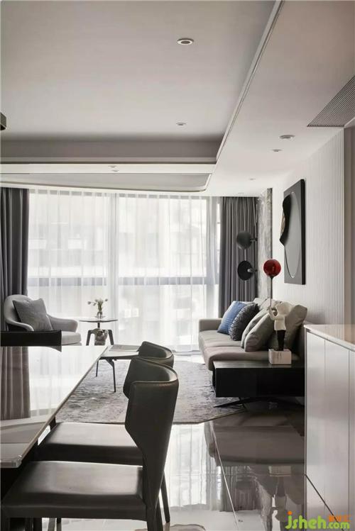 關(guān)于設(shè)計(jì):這是一個(gè)三代同堂的幸福之家,獨(dú)特的戶型讓每個(gè)空間都陽光明亮,上海室內(nèi)設(shè)計(jì)師動(dòng)靜分區(qū)的手法使公共空間的布局與使用功能完美結(jié)合,描繪出最豐富動(dòng)人的空間效果。