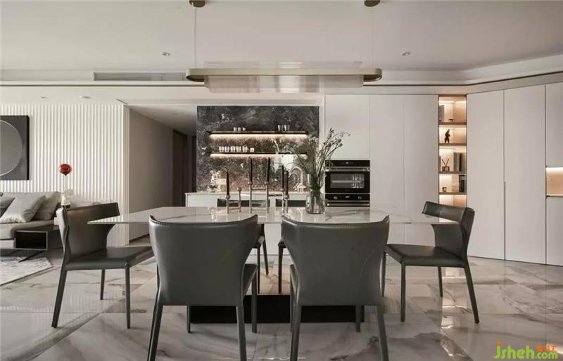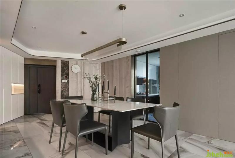 空間整體暖白加淺棕的色調(diào),猶如初冬雪后的晴天,溫暖而明亮,深木色家具壓制了空間的輕盈之感,上海室內(nèi)設(shè)計(jì)師對(duì)于線條和裝飾的挑選都極度講究,力致呈現(xiàn)一個(gè)具有品位格調(diào)的美學(xué)空間。