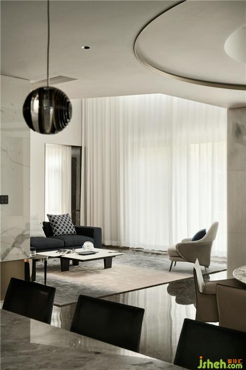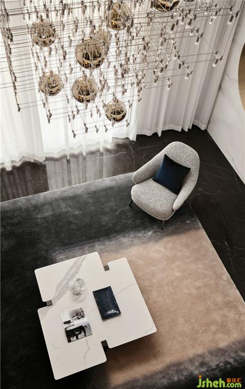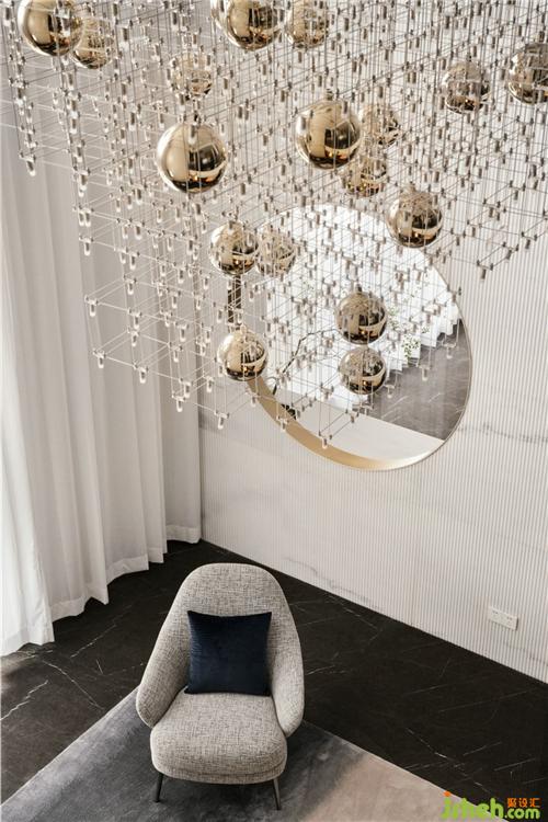 客廳小到擺件、抱枕,大到沙發(fā)、吊燈,無不給人一種奢華高貴國際范兒的感覺,設(shè)計師采用米蘭的現(xiàn)代極簡風(fēng)格,極簡精致而簡約,同時透露著濃重的設(shè)計感。白色大理石也給這高貴的空間加上濃厚的一筆韻味。