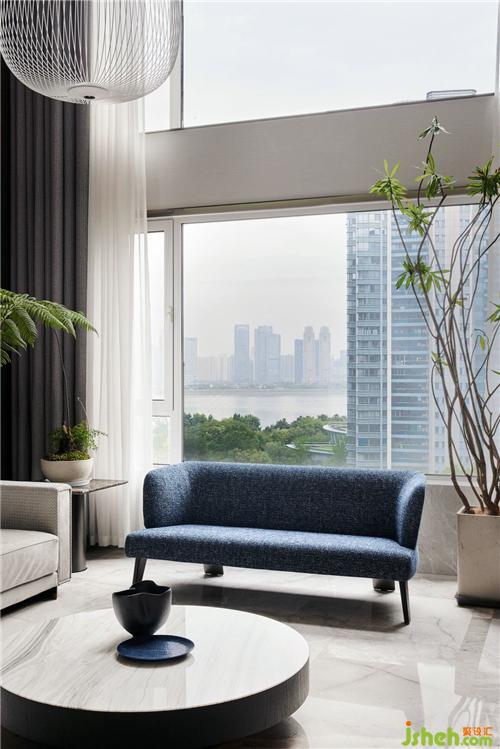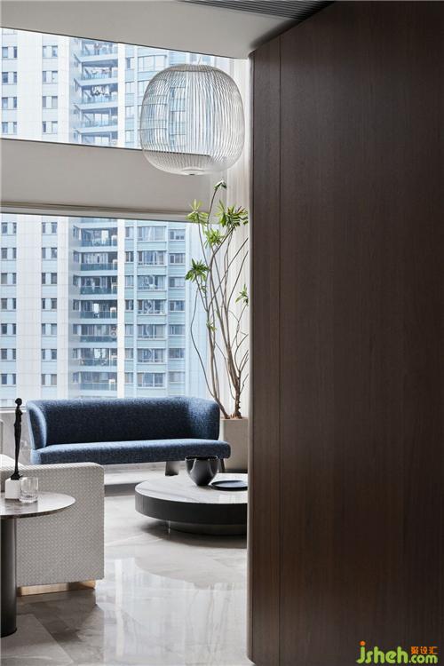 最使人驚艷的是玄關(guān)設(shè)計(jì)。推門(mén)進(jìn)來(lái),映入眼簾的是一面用木飾面打造的精致隔斷,頂上天井設(shè)計(jì),鏤空到二樓家庭廳位置,杭州豪宅設(shè)計(jì)完美解決了玄關(guān)光線較暗的問(wèn)題。破口沖天,似有想突破拼出一翻天地,天井,不止是一方美景,更是一方哲學(xué)。