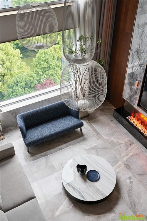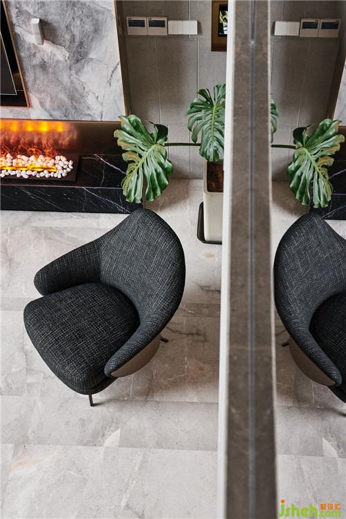蒸汽壁爐印在白色吊頂上暖色的星星火光為整個(gè)客廳營(yíng)造了一種為爐而坐的生活情趣和氣氛,但此外更多的是滿足精神上對(duì)生活的原始追求。