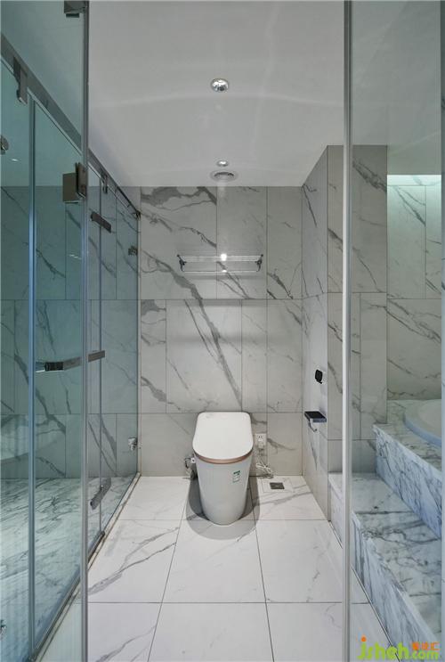 主衛(wèi)使用大面積的白色瓷磚鋪貼墻面與地面,讓整個空間更加明亮,根據(jù)業(yè)主的需求,安裝超大浴缸,杭州豪宅設(shè)計并且使用玻璃作為與主臥之間的隔斷,整體寬敞大氣。