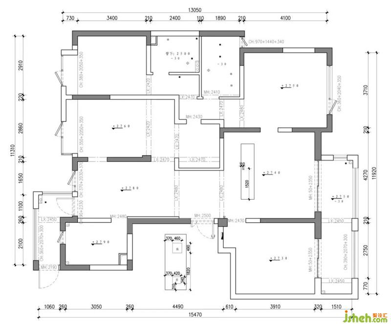 原始結(jié)構(gòu)空間動(dòng)線比較凌亂,浪費(fèi)面積比較多,入戶的玄關(guān)設(shè)置也會(huì)有點(diǎn)局促,不是滿足三代人同住的理想空間。