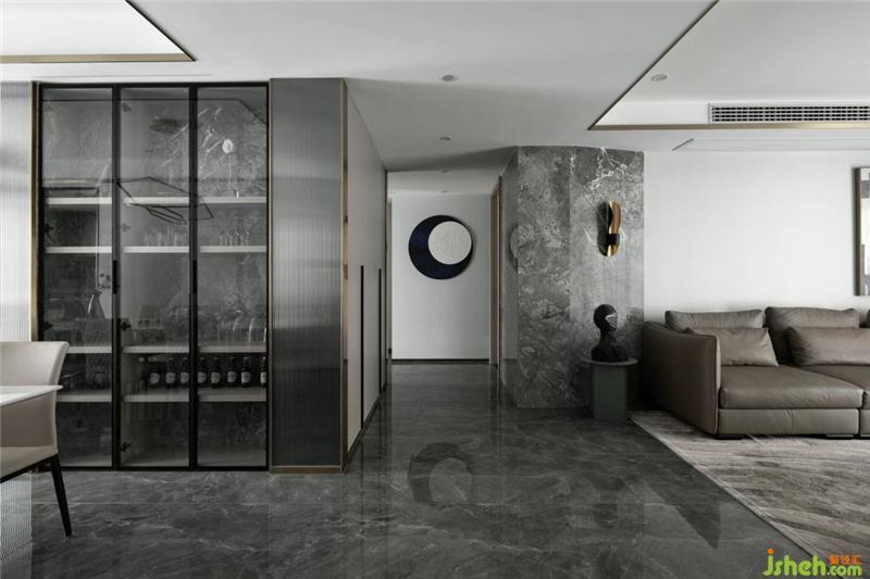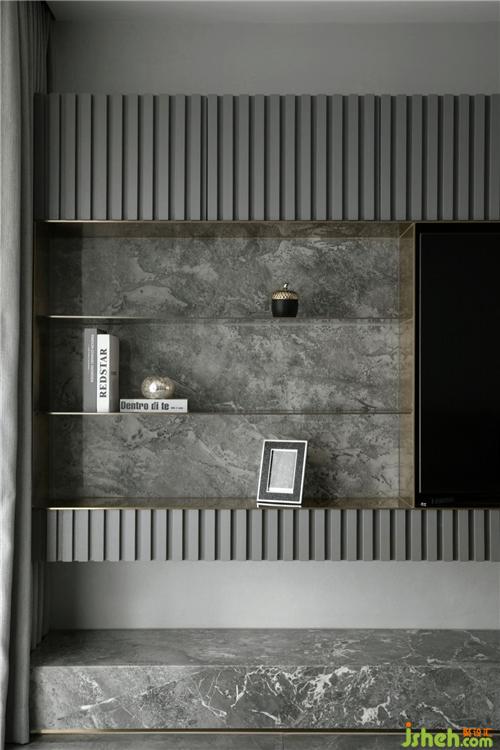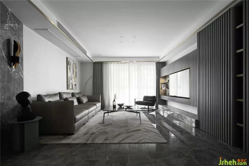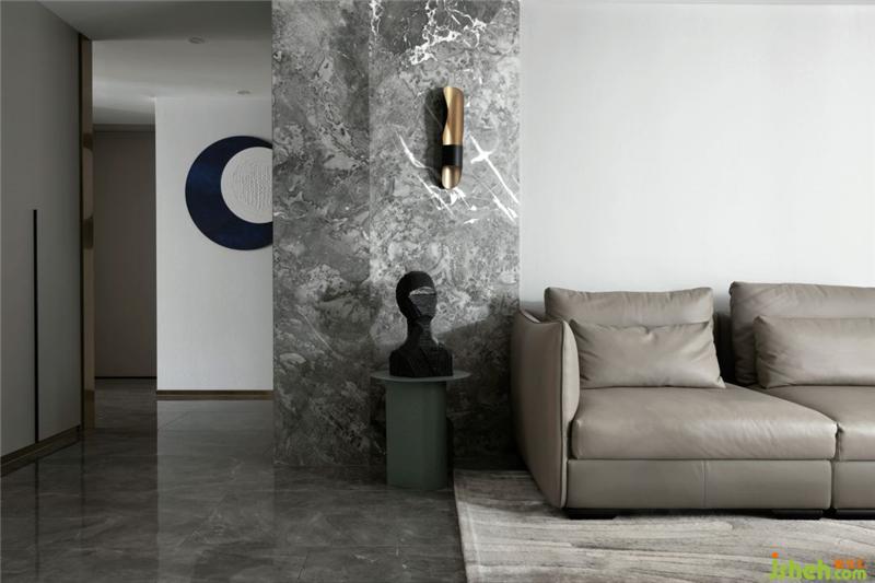 全空間以灰白色調(diào)為主,電視墻隱形柜門的格柵線條,滿足功能同時(shí)豐富了空間的層次感;沙發(fā)背后灰紋路的大理石裝飾和金屬板的運(yùn)用,杭州裝修設(shè)計(jì)營(yíng)造出一種有機(jī)的現(xiàn)代奢華感,用線條勾勒出一個(gè)干凈簡(jiǎn)單的畫(huà)面。