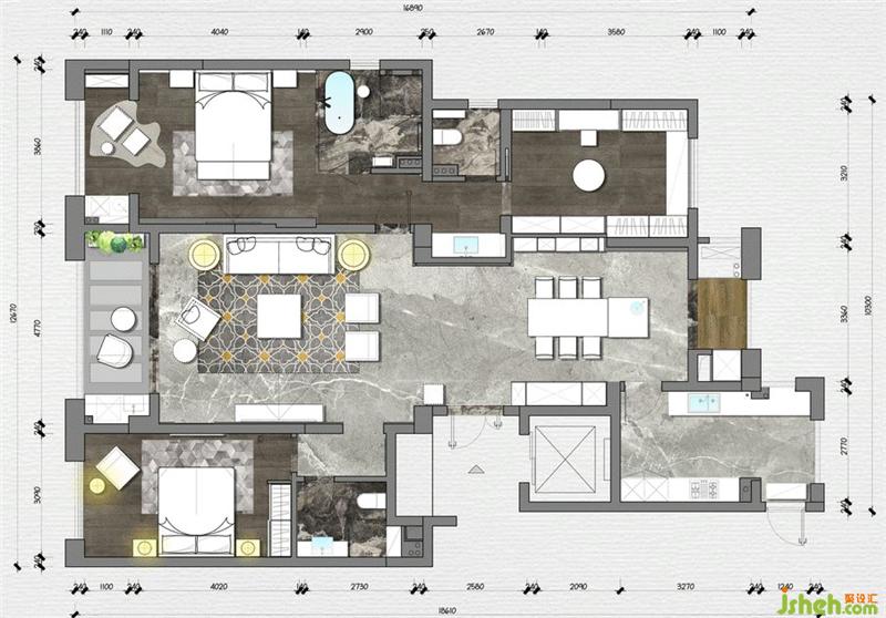 “ 總是愛看錢塘岸邊的波瀾變化,配以江面和對岸的連綿景色,遂購下這套高層,杭州裝修設計自然內(nèi)部修葺也要符對這開闊意境:黃鶴一去不復返,白云千載空悠悠。翱翔萬里,來去千年。”