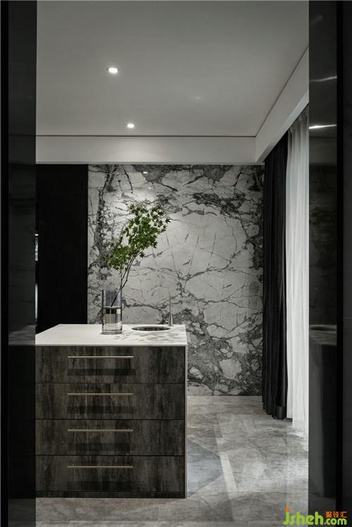 沉靜卻不至暗的餐廳,抽象水墨畫般的理石墻面,杭州裝修設(shè)計(jì)點(diǎn)滴綠葉,一卷寫意藝術(shù)畫面鋪展開來(lái)。