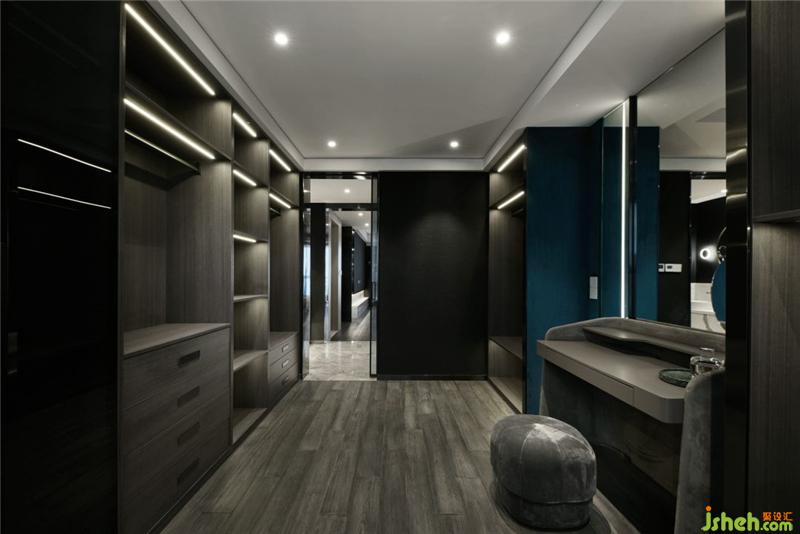 主體灰調(diào)卻又出彩的衣帽間,杭州裝修設(shè)計(jì)開啟主人一天的美好心情。