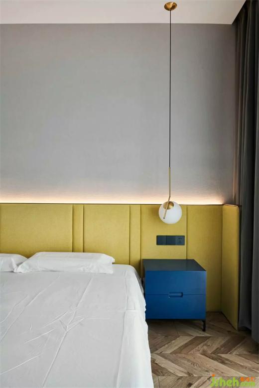 藍(lán)色和黃色讓有限的空間迸發(fā)出活力,通過合理的布局和活力的渲染,讓整個(gè)房間變得精致。