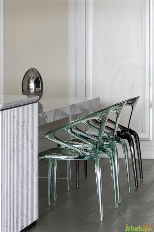 上海豪宅設計透明亞克力支柱呈現(xiàn)出奇妙的懸浮感,同時在造型和材質上和增加的書房空間有機的結合在一起。