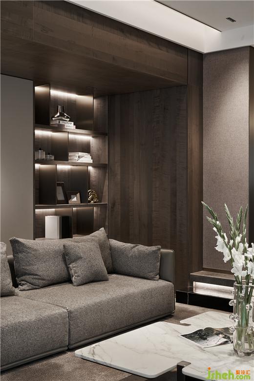 別墅設(shè)計以深咖色木飾面與白色大理石為背景搭建生活舞臺:統(tǒng)一的對話、均勻和諧的色調(diào)與材質(zhì),規(guī)整中藏著不規(guī)則的驚喜。彰顯內(nèi)斂沉穩(wěn)的品格,更反映了屋主對生活品質(zhì)的高級訴求。