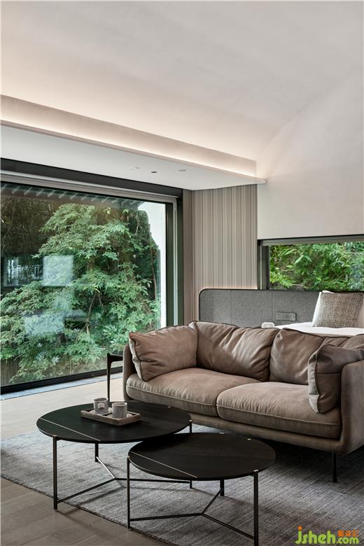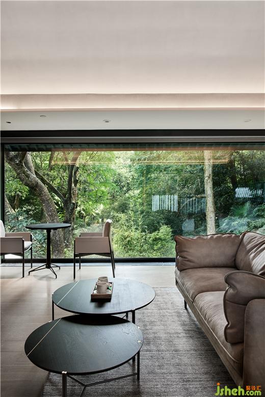 光影的巧思,玻璃磚對于光的折射讓空間不再直銳,而是如漣漪般徐徐勻散,光線變得柔和質(zhì)感;當光線落在地面,被顏色深沉的大理石地板所吸收,營造出一種模糊的空間邊界,賦予空間無限延伸的視覺效果。