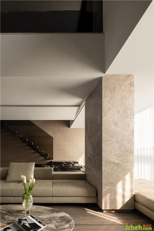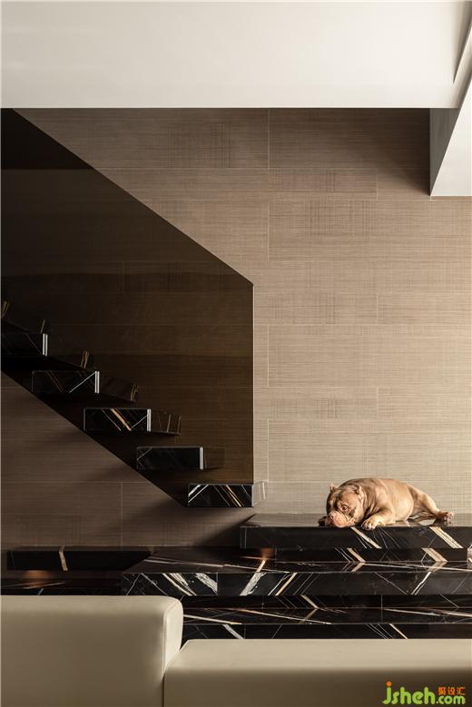 定制鋼架樓梯經(jīng)過反復(fù)驗(yàn)證確保其安全性;面對(duì)頂樓散落的陽光,勞倫黑金色石材帶來的質(zhì)感搭配歐茶色玻璃扶手,整座樓梯呈現(xiàn)出如藝術(shù)裝置一般的觀賞性。兼顧使用與美感。