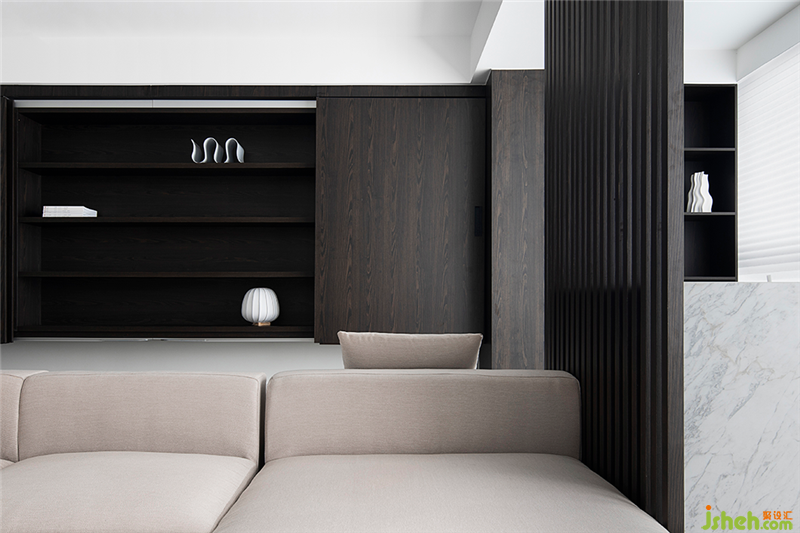 業(yè)主本人特別喜歡色彩平靜的內(nèi)飾設(shè)計(jì),所以在她的設(shè)計(jì)項(xiàng)目中深灰色是主色,具有很高的辨識度。