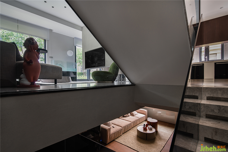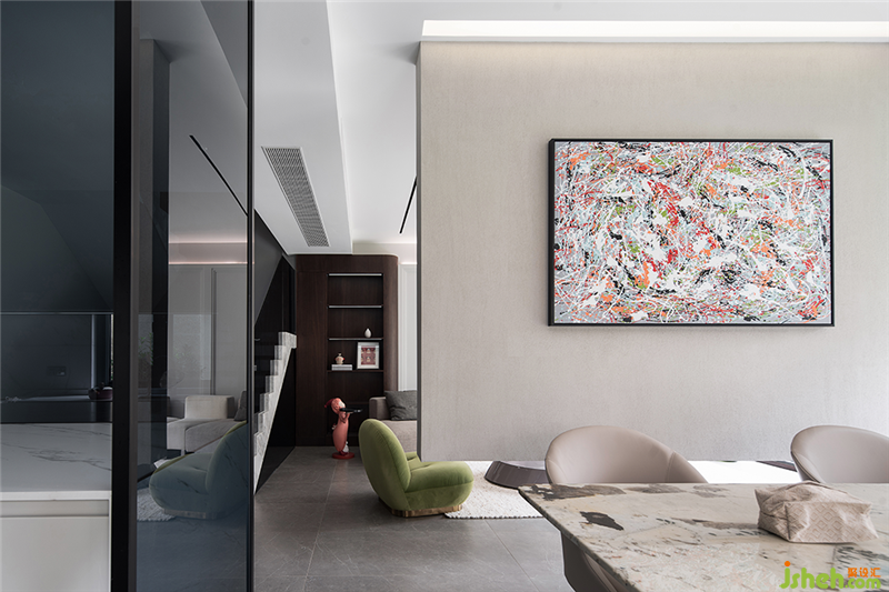 推開進戶一側的暗門,則是一層書房,沉浸式單色相能使復雜的輪廓安靜下來,舟山別墅裝令閱讀者仿佛置身在一個沒有聲響的世界里。
