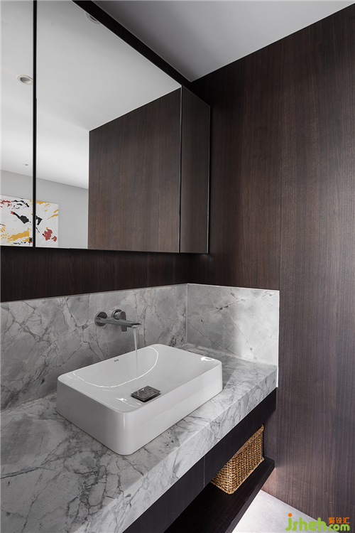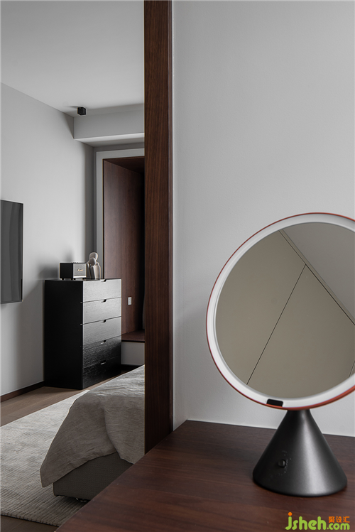拾級(jí)而上的二層私人空間,將干區(qū)納入過(guò)道,鏡柜的使用不僅增加收納區(qū)舟山別墅裝,也在視覺(jué)上豐富了空間的層次。