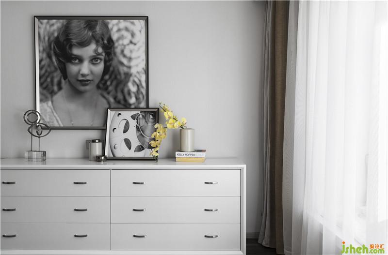 兩人的主臥聚集著故事演變,家庭的前身是荷爾蒙的沖擊,家庭的延續(xù)則是愛情的結(jié)晶。曾經(jīng)瘋狂的熱愛《泰坦尼克號》《真愛至上》《黃金時代》……這些浪漫與經(jīng)典的電影,都深深的影響著女主人。主臥以如懷舊電影般經(jīng)典的典雅灰為主色,點(diǎn)綴以黑色和橙色,打造氣質(zhì)空間。用景外之景與象外之象融以愛情潤色,塑造一抹浪漫神韻。
