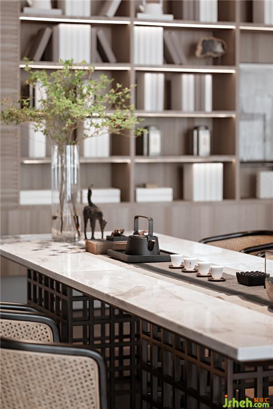 草色青青柳色濃,玉壺傾酒滿金鐘。在廊坊,同樣可以感受到“天蒼蒼,野茫茫,風(fēng)吹草低見牛羊?!边@樣的感受同樣可以在茶臺(tái)上得到,設(shè)計(jì)師將這一小方豪闊瀟灑的天地融入進(jìn)設(shè)計(jì)里,讓人在沉重的鋼筋水泥里也能感受到輕盈遼闊的自然。