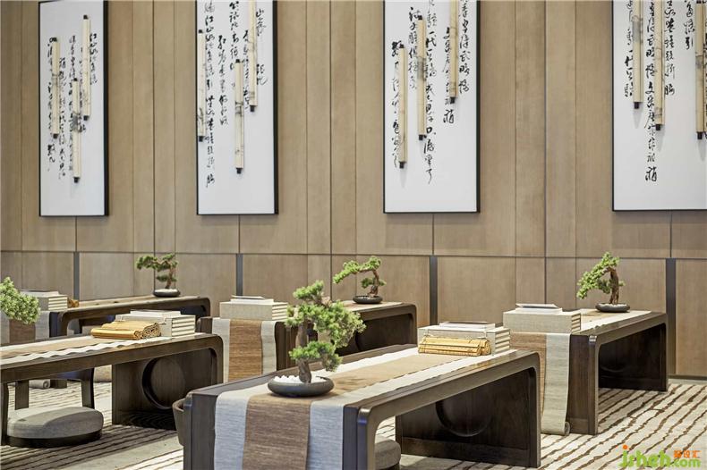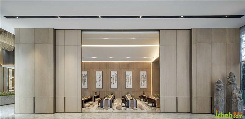 前廳是人與人溝通的初始,垂掛而下的山水圖,使人一腳便踏進(jìn)了素裝水墨的蒼茫天地間,在起承轉(zhuǎn)合中得到一張“春回牛山雨蒙蒙”的臨淄八景圖,我們又在此處放置“牧人趕?!钡臄[飾,寓意美好的祝福與期望。裝修設(shè)計(jì)