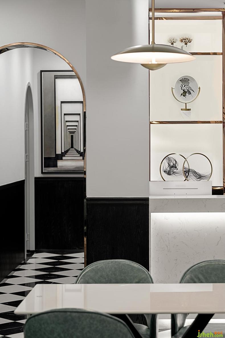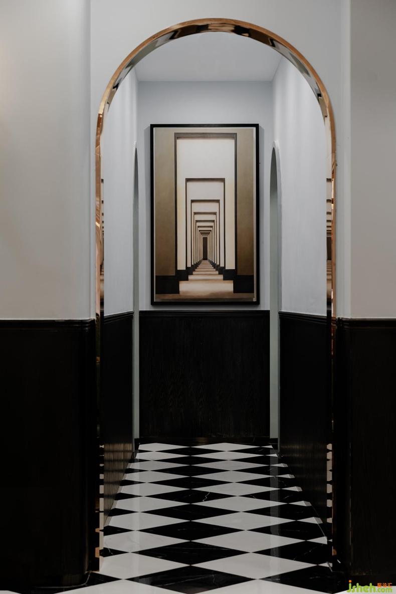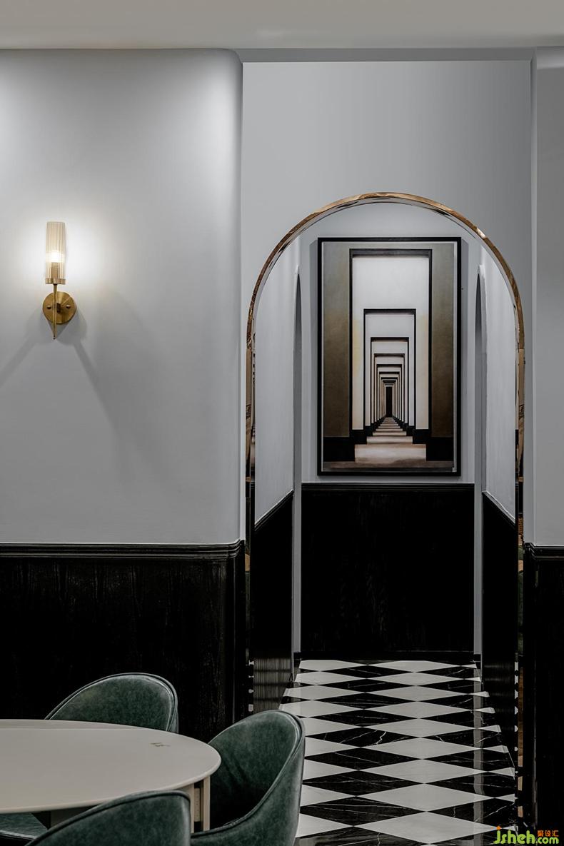 在裝飾方面,設(shè)計師在空間中裝飾了多幅掛畫,在滿足美學(xué)要求的前提下,豐富了整個空間的氛圍感與表現(xiàn)力,使整個空間變得更為豐富與立體,多面的展示整個空間帶來的美學(xué)感受與情感敘述。