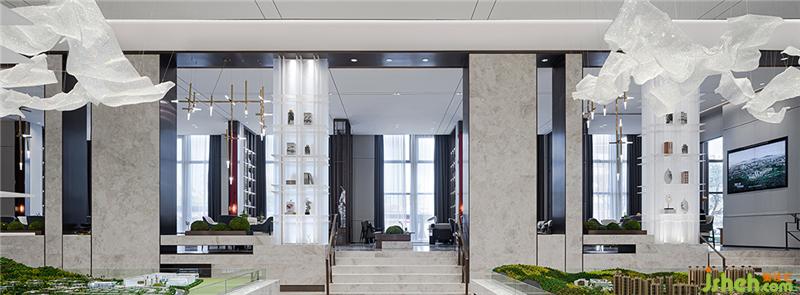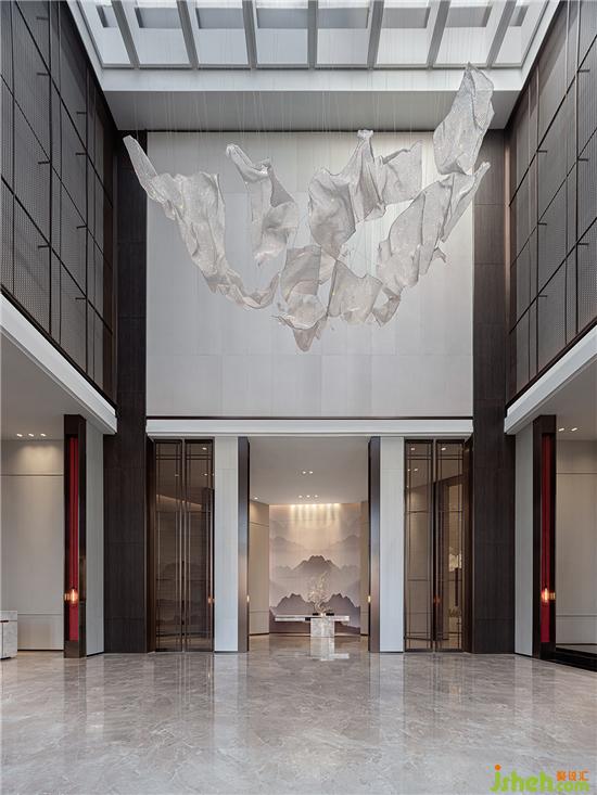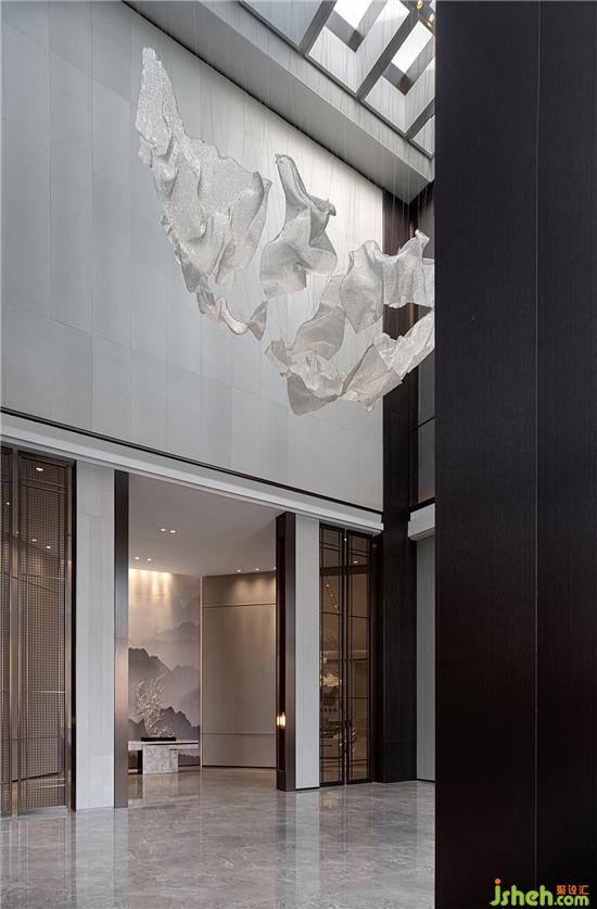 在接待前廳景觀區(qū),靈動抽象的玻璃藝術品,如飛濺而起的水花,精妙地呈現(xiàn)出明凈透徹的光學之美,營造出清雅寧靜的空間氣場,給人一種愉悅輕松的體驗。