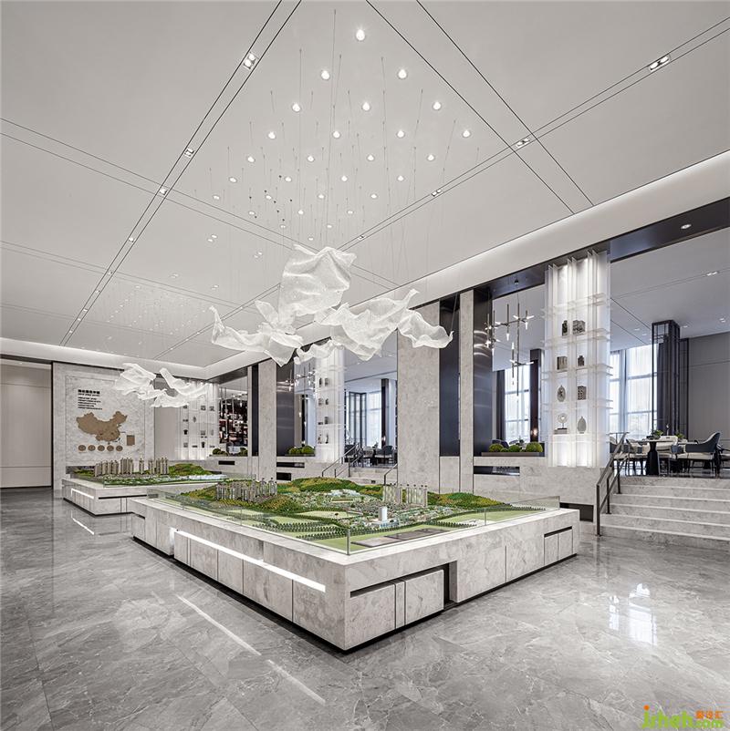 古人有“墨分五色”之說,即焦、濃、重、淡、清。墨是寒色,由五墨繪成的畫應該有寒感,調(diào)子灰暗,但好的水墨畫卻能使人有溫感且不會感覺到它的調(diào)子灰暗,因為好畫善于利用留白來與黑色相調(diào)和,通過留白,不僅可以拓寬色域范圍,增加明與暗之間的層次變化,還能給人以無限的想象空間,創(chuàng)造出“無畫處皆成妙境”的藝術效果。而且,好墨的黑有如漆的光澤,是不會讓人有灰暗感的。銷售中心設計