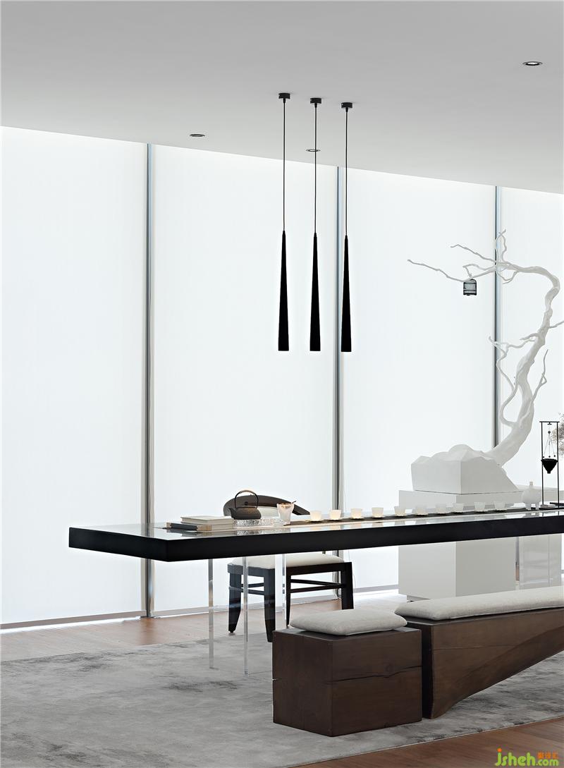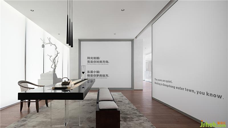 茶藝室延續(xù)了展示中心簡約素雅的風(fēng)格,以極簡的白色鋪墊空間的基調(diào),將茶道的禪意之美融入現(xiàn)代的表達(dá)手法,實虛結(jié)合,化繁為簡。設(shè)計師借鑒鉆石元素的特性,充分利用光影營造色彩素雅,格調(diào)清新,意境優(yōu)美的水墨山水畫境。