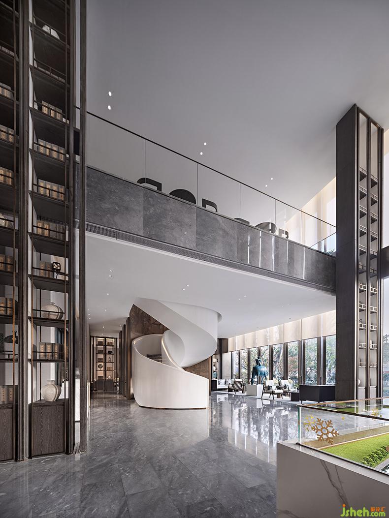 海螺形的旋轉(zhuǎn)樓梯,有著柔美的弧形曲線,極簡的純白色,與天花融為一體,銷售中心設(shè)計銜接上下兩個空間,既滿足了功能的需求,又展現(xiàn)出現(xiàn)代藝術(shù)的格調(diào)。