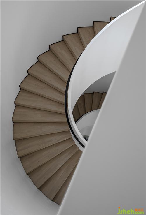 延伸向下的挑高空間,木色與白色墻體的碰撞。
