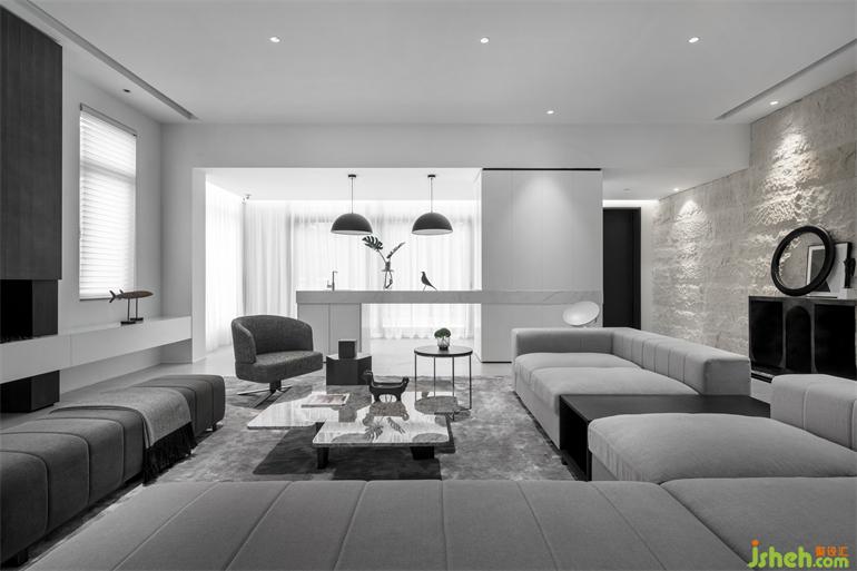 壁爐燈給黑白為主色調(diào)的空間