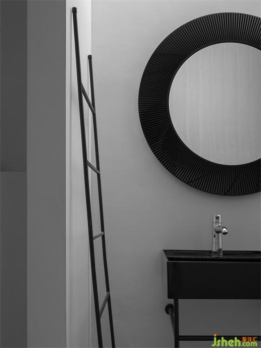 別墅裝飾磨砂質(zhì)感的黑色洗手臺和鏡子詮釋著安靜與高級。