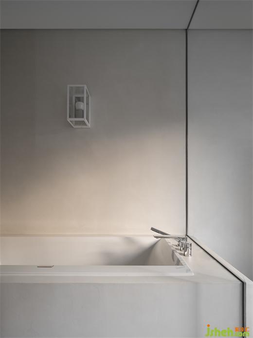 浴室內(nèi)是純白色的,方形浴缸搭配溫暖柔和的燈光給人極致安寧舒適的沐浴體驗,別墅裝飾可以在在泡澡時放松身心,是繁忙的生活中一方閑適的空間。