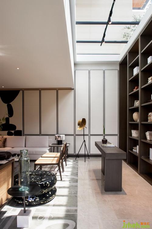 挑高的天窗設(shè)計(jì),別致的庭院景觀,開(kāi)放式的格局讓互相獨(dú)立的景致共生交融,形成有趣的空間對(duì)景。